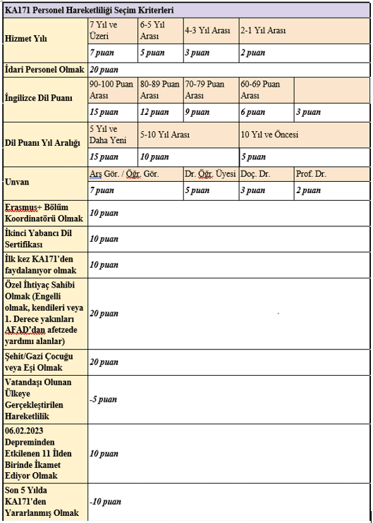 2023 proje yılı kapsamında Erasmus+ Program ve Ortak Ülkeler arasında (KA171) Yükseköğretim Personel Eğitim Alma Hareketliliği için üniversitemize tahsis edilmiş kontenjan dahilinde toplam (2) kazanan için aşağıda yer alan ilgili kademelere personel başvuruları alınacaktır.